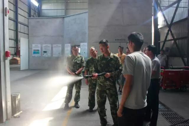 总经理金卫东和常务副总经理、总工张克年向各位来宾详细介绍了公司图像火灾探测系统、自动消防炮系统、细水雾推车等产品并陪同支队领导们观摩了实验演示,过程中就产品的功能特点、应用场所、火灾应对策略进行了深入的交流。