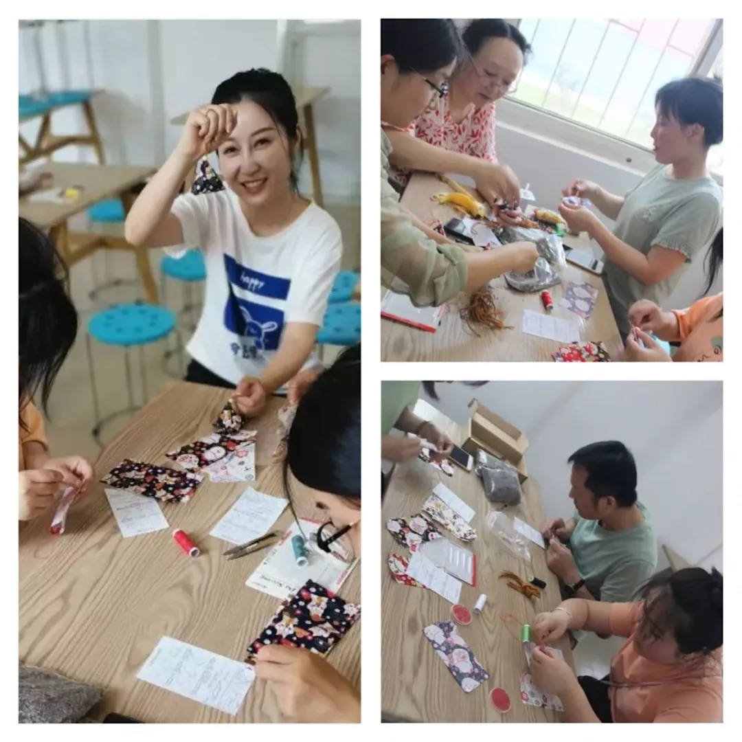 体验完包粽子,小伙伴们又被艾草的香味吸引了过去,大家又开始了第二关的“隐藏挑战”——香囊DIY。小伙伴们一边穿针引线,学习香囊制作,一边互帮互助,相互沟通交流,欢声、笑声、交谈声不绝于耳。
