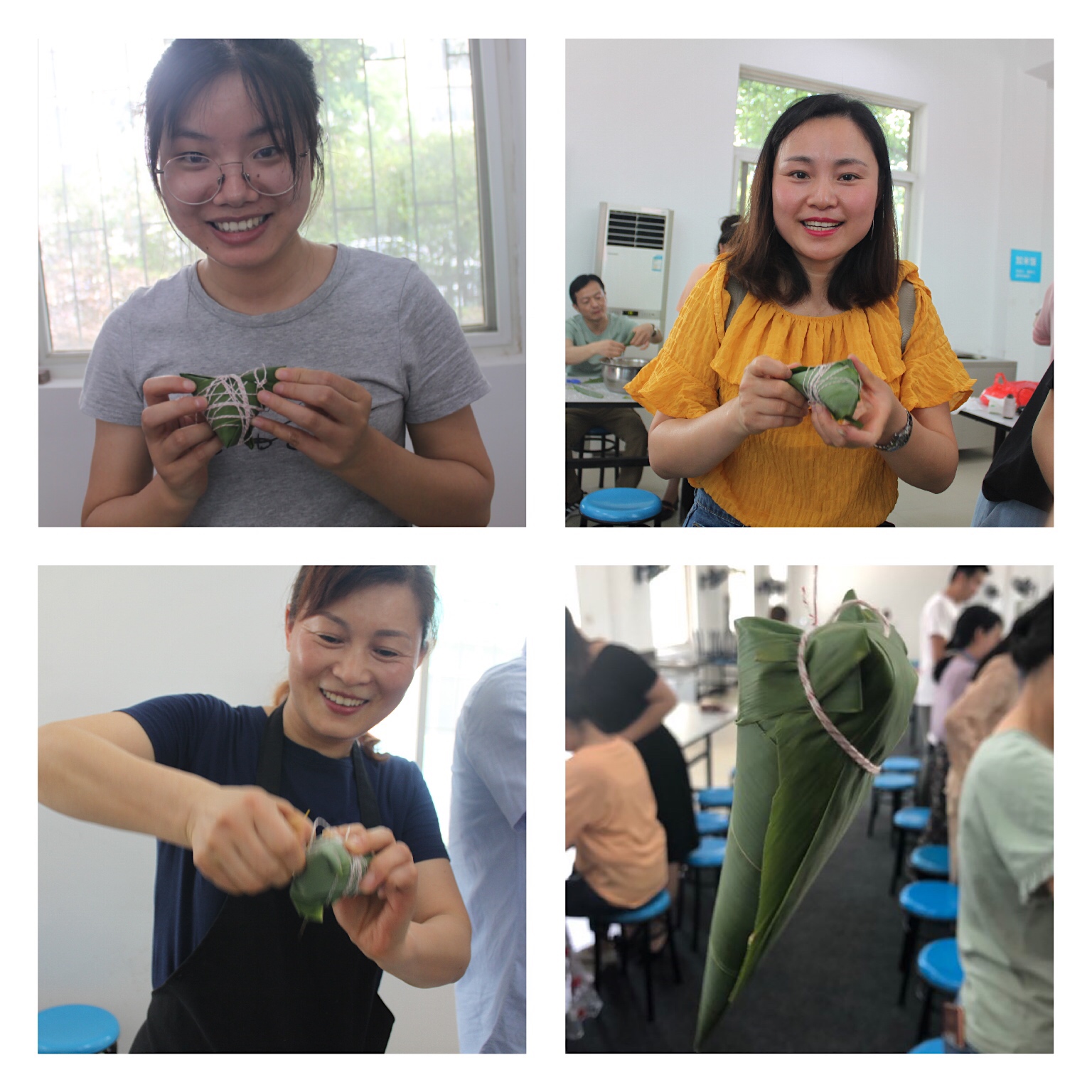 一个个小香囊成型了,一百多个形态各异的粽子也出炉了,粽香飘满了整个食堂。