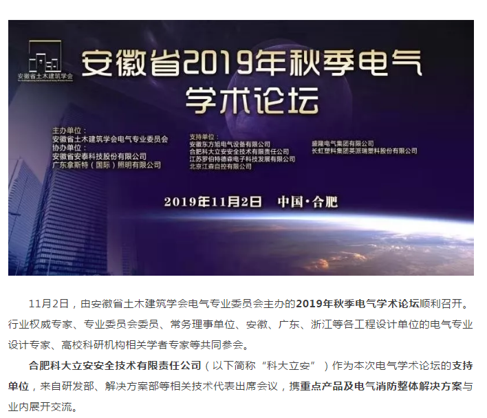 安徽省2019年秋季电气学术论坛丨科大立安“电亮”全场