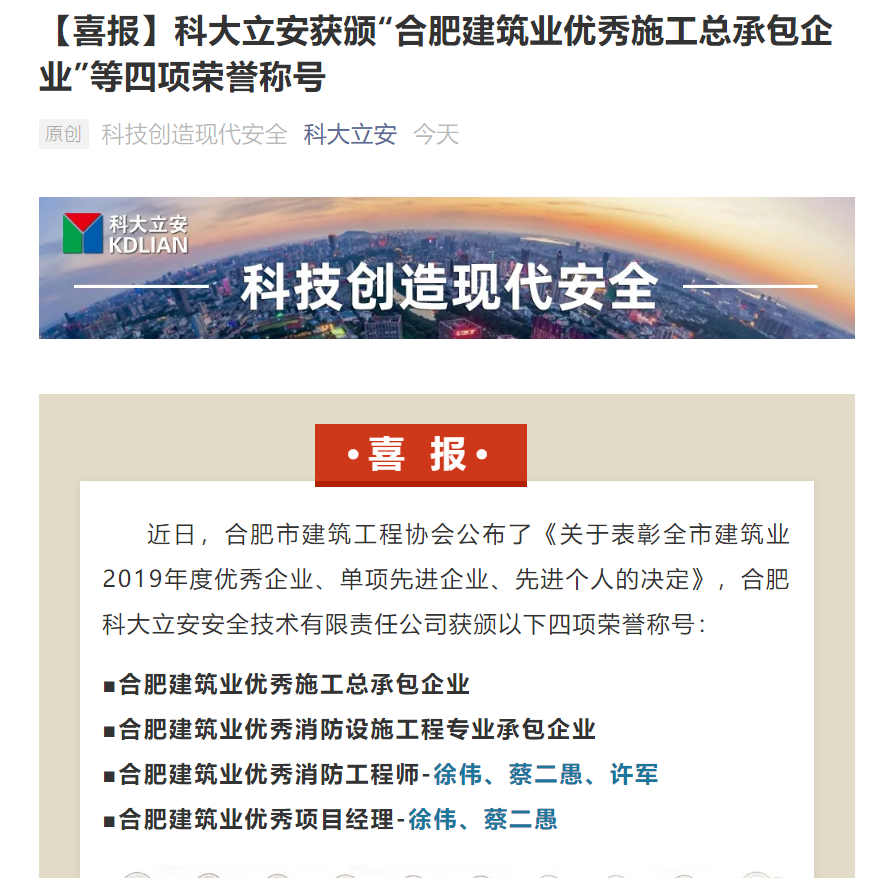 【喜报】科大立安获颁“合肥建筑业优秀施工总承包企业”等四项荣誉称号