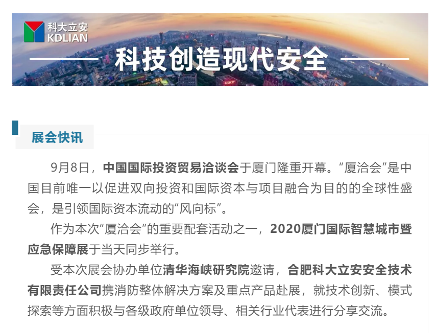 「智慧消防守护城市安全」科大立安亮相2020厦门国际智慧城市暨应急保障展