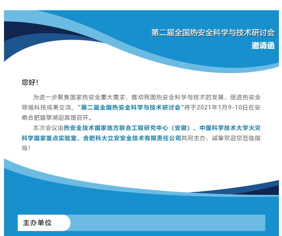 邀请函 | 科大立安主办“第二届全国热安全科学与技术研讨会”即将召开!